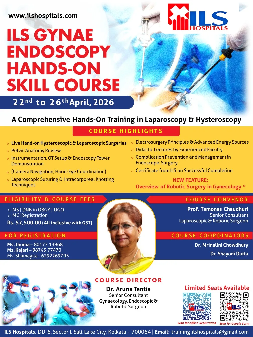 ILS Hospitals Salt Lake is recognized as FOGSI (Federation of Obstetric and Gynaecological Societies of India) / IAGE Gynae Endoscopic Training Center in Eastern India. ILS Academia, Salt Lake is conducting basic and advanced courses in Gynae endoscopy at regular intervals. Attending students get 40 hours of hands-on training, didactic lectures, OT observer ship, and pre & post evaluation and suturing training. Every participant will receive a Fellowship Training Certificate from FOGSI / ILS Hospitals. Till 2022 ILS Academia Salt Lake has successfully conducted 8 batches of FOGSI/IAGE Gynae Endoscopic Training.